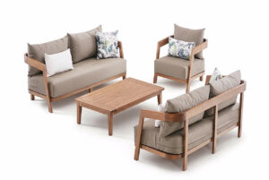 L’ensemble extérieur Bali 3+3+1+tb se compose d’une structure en bois massif finition noyer, apportant une touche élégante et intemporelle à votre jardin ou terrasse. Ce bois robuste et élégant offre une résistance naturelle tout en diffusant une chaleur et une authenticité qui en font un choix idéal pour un aménagement extérieur raffiné. La finition noyer, quant à elle, souligne la beauté naturelle du matériau, assurant à la fois longévité et esthétisme, pour un mobilier qui résiste aux épreuves du temps avec style.