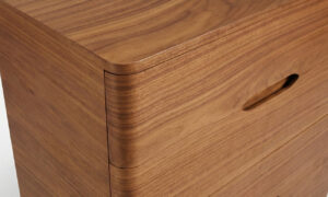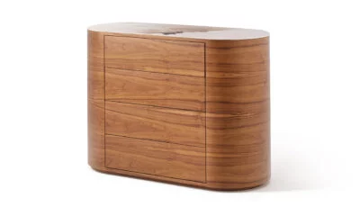 La commode Canva se distingue par sa structure en bois plaqué noyer, qui lui confère une allure à la fois chaleureuse et raffinée. Son design épuré met en valeur la beauté du bois, apportant une touche de sophistication subtile à toutes les pièces. Idéale pour organiser vos affaires avec style, cette commode combine fonctionnalité et esthétique, créant un point focal harmonieux dans votre salon, chambre ou bureau.