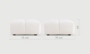 Sa structure en bois massif, complétée par des piètements en hêtre massif, garantit une excellente stabilité et une durabilité rassurante. Pour l’intégrer avec style, placez le pouf Fluffy près d’un canapé ou d’un fauteuil afin de créer une zone détente cohérente. Il peut également servir d’assise d’appoint autour d’une table basse ou de repose-pieds dans un coin lecture. Associez-le à un tapis texturé ou à quelques accessoires aux tons naturels pour renforcer l’harmonie visuelle et apporter du rythme à votre décoration intérieure.