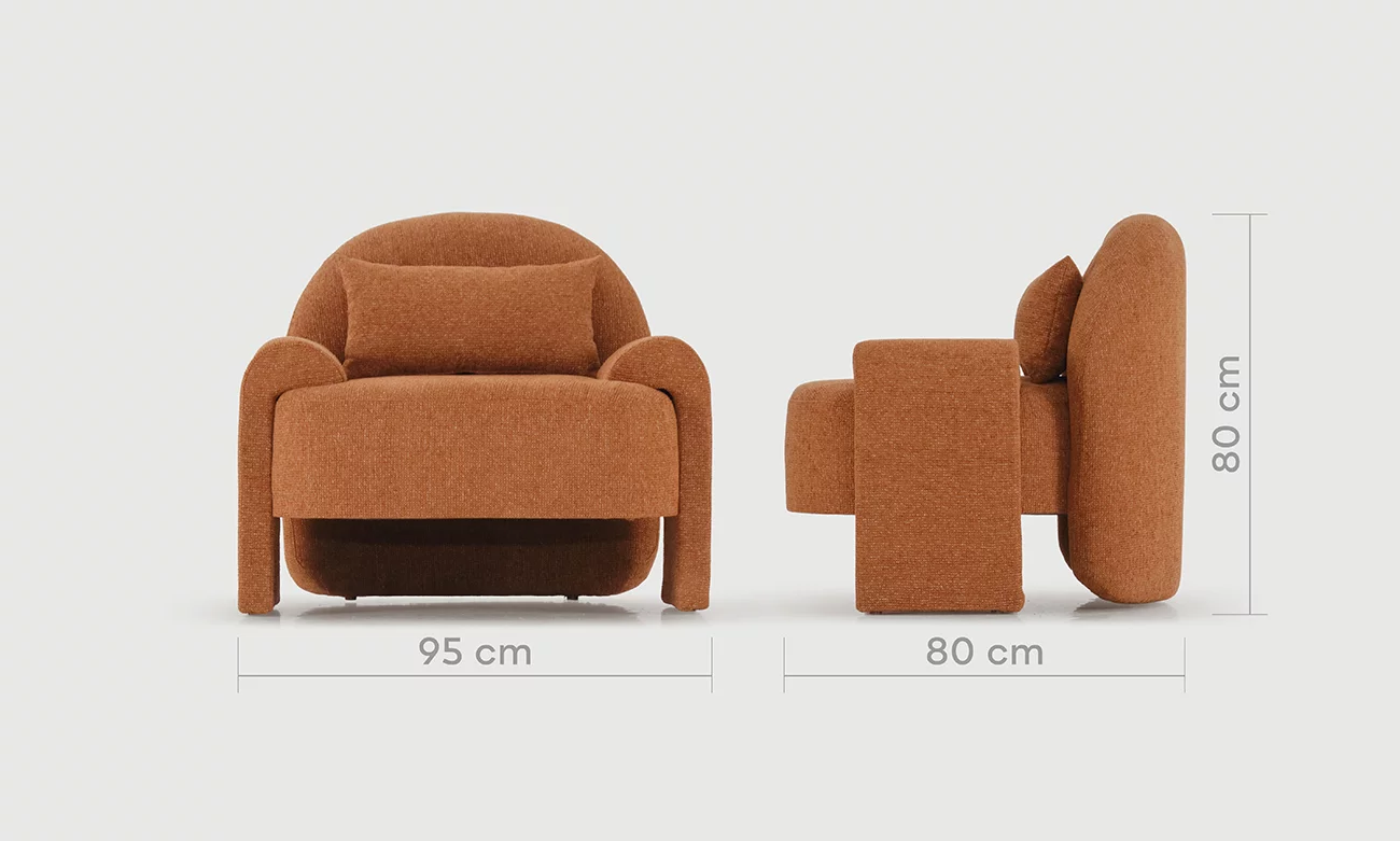 Le fauteuil Hugo se distingue par son assise généreuse et son allure contemporaine. Son rembourrage, composé de mousse HR35, HR30, ABS et souplesse, procure un accueil agréable et un soutien optimal au quotidien. Revêtu d’une bouclette traitée anti-taches, il allie douceur au toucher et praticité, tout en apportant une note chaleureuse et actuelle à votre intérieur.
