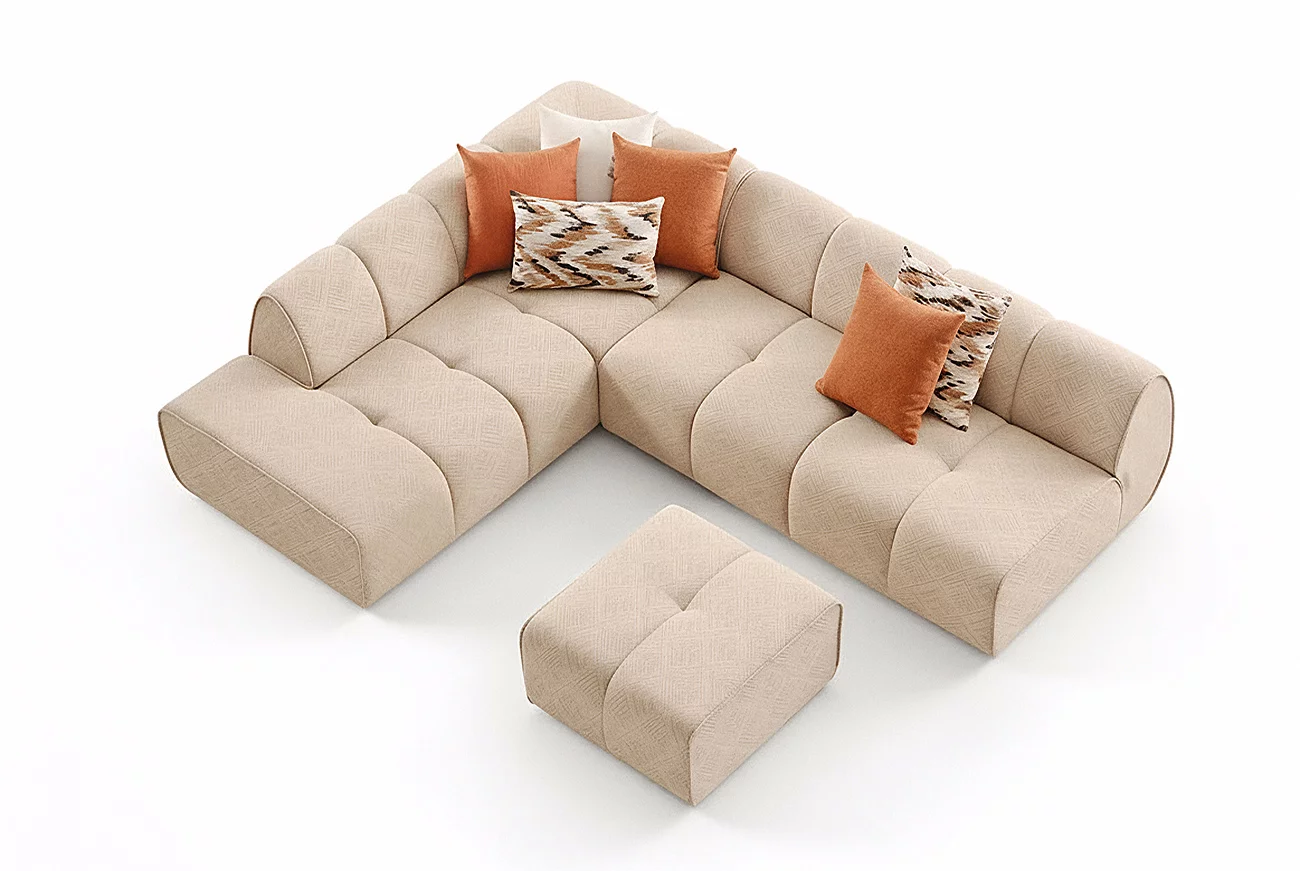 Le salon en L Kris incarne l’excellence du confort grâce à son rembourrage en mousse HR35 et HR30, soigneusement sélectionné et importé d’Italie. Cette alliance de densités et de technologies, incluant le MG 4000 et la Souplesse, offre une assise moelleuse, réactive et parfaitement équilibrée. Chaque moment passé sur ce canapé devient une véritable expérience sensorielle, où le corps est soutenu sans rigidité. Pensé pour les amateurs de détente raffinée, Kris transforme le salon en un cocon de bien-être, où design contemporain et qualité premium se rencontrent avec finesse.