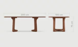 Son piétement en hêtre massif teinté noyer affirme une base stable et authentique, mettant en avant un savoir-faire artisanal et une finition soignée. Pour sublimer cette table, misez sur des chaises aux revêtements textiles clairs afin d’éclaircir l’ensemble et créer un bel équilibre visuel. Un luminaire suspendu au-dessus du plateau renforcera la convivialité de l’espace, tandis qu’un centre de table minimaliste — composé de bougies ou d’un arrangement floral — apportera une touche chaleureuse. Pour un effet encore plus harmonieux, associez-la à un buffet assorti ou à des accessoires aux nuances naturelles qui souligneront la richesse de la teinte noyer.