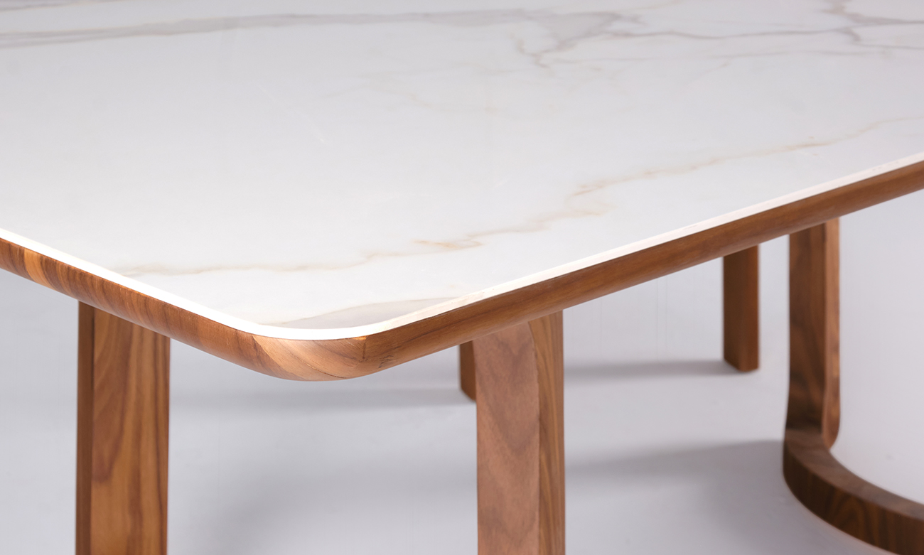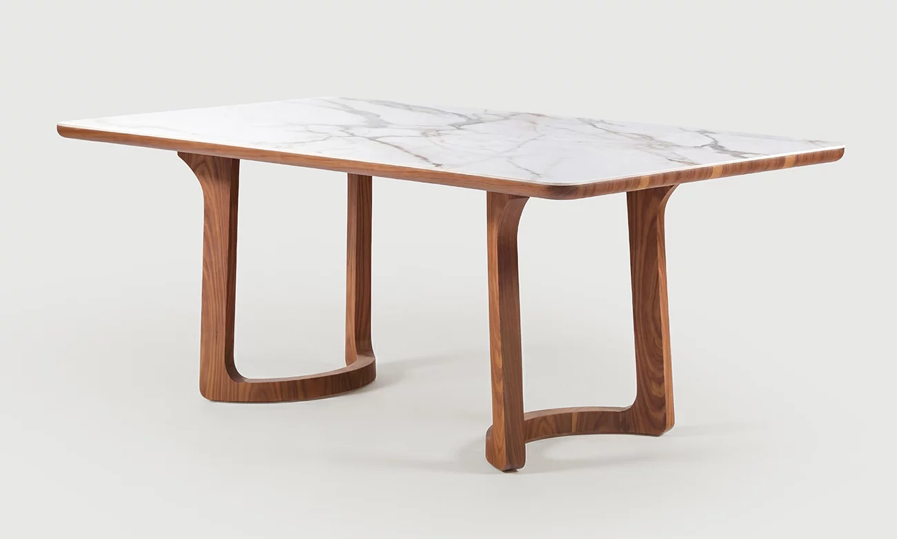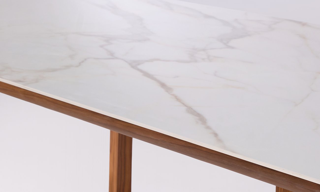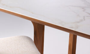 La table de salle à manger Maestro séduit par son allure contemporaine et sa conception haut de gamme. Son plateau en céramique, reconnu pour sa robustesse et sa facilité d’entretien, repose sur un support en bois plaqué noyer qui apporte profondeur et caractère à l’ensemble. L’association de ces matières crée un contraste subtil entre minéral et boisé, offrant une pièce à la fois esthétique et durable. Idéale pour recevoir famille et invités, la table Maestro transforme chaque repas en un moment privilégié dans un cadre élégant et soigneusement travaillé.