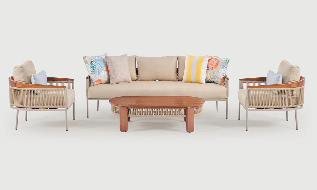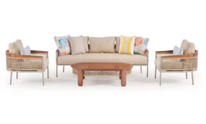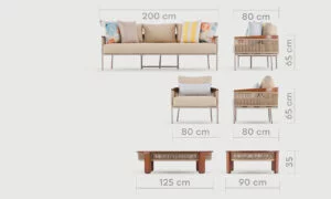 L’ensemble d’extérieur Manilla se distingue par une conception soignée qui associe aluminium, bois et finition laquée synthétique, garantissant une excellente résistance à l’usure et aux conditions extérieures. Cette combinaison de matériaux apporte une allure contemporaine tout en conservant une sensation naturelle et équilibrée. Pensé pour durer, Manilla structure élégamment votre terrasse ou votre jardin et crée un cadre harmonieux, idéal pour profiter pleinement de vos instants en plein air.