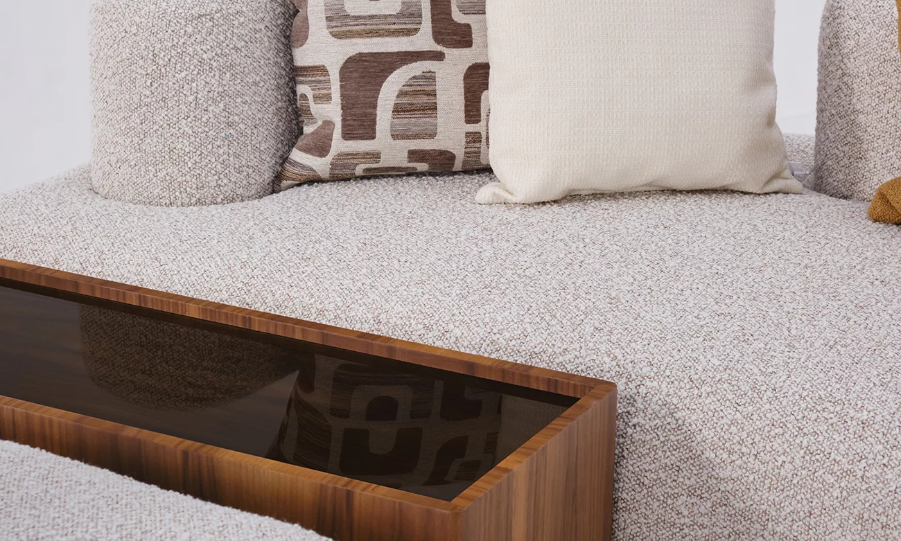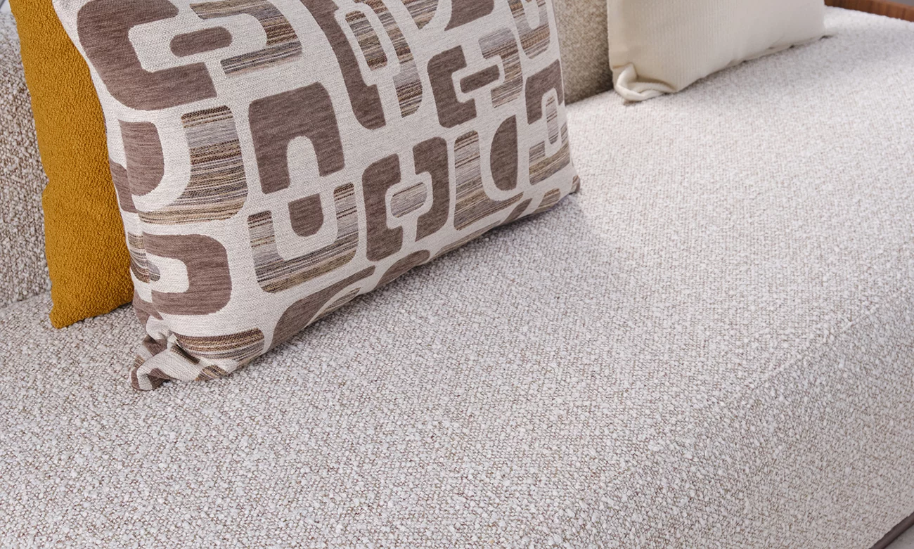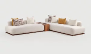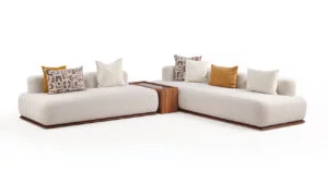 Le salon en L Nolita PM séduit par son rembourrage haut de gamme composé de mousse HR35 et HR30 importée d’Italie, associée au MG 4000 pour une souplesse optimale. Chaque assise est soigneusement tapissée d’une toile ou d’une bouclette traitée antitaches, garantissant durabilité et facilité d’entretien. Son design contemporain et accueillant en fait un pièce maîtresse idéale pour votre salon, alliant confort et style avec une présence chaleureuse qui invite à la détente.