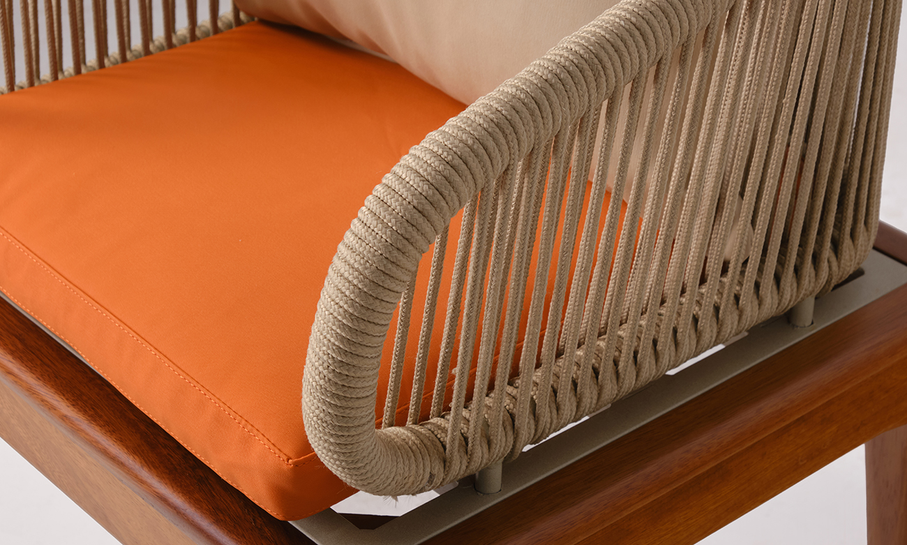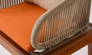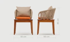 Le dossier de la chaise Sydney est conçu en aluminium, offrant à la fois légèreté et solidité, et bénéficie d’une finition laquée synthétique qui garantit une résistance exceptionnelle à l’usure. Le tissage en corde ajoute une touche de texture et de confort. De plus, l’assise est recouverte d’un tissu imperméable, assurant une protection optimale contre l’humidité. Pour un ensemble harmonieux, vous pouvez compléter cette chaise avec des coussins aux tons neutres pour accentuer son côté moderne et confortable.