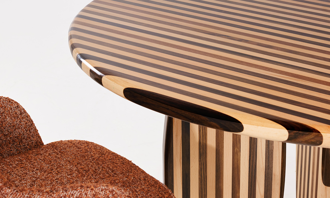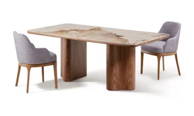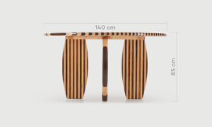 Grâce à sa conception en hêtre et amazakoué, la table Zebra garantit une stabilité fiable et une longévité appréciable au quotidien. Pour la sublimer, associez-la à des chaises aux textures variées, comme du tissu ou du cuir, afin de créer un contraste visuel intéressant. Un centre de table épuré, accompagné de luminaires suspendus au-dessus, viendra structurer l’espace avec élégance. Vous pouvez également ajouter un tapis aux tons neutres pour délimiter la zone repas et instaurer une ambiance accueillante et raffinée.